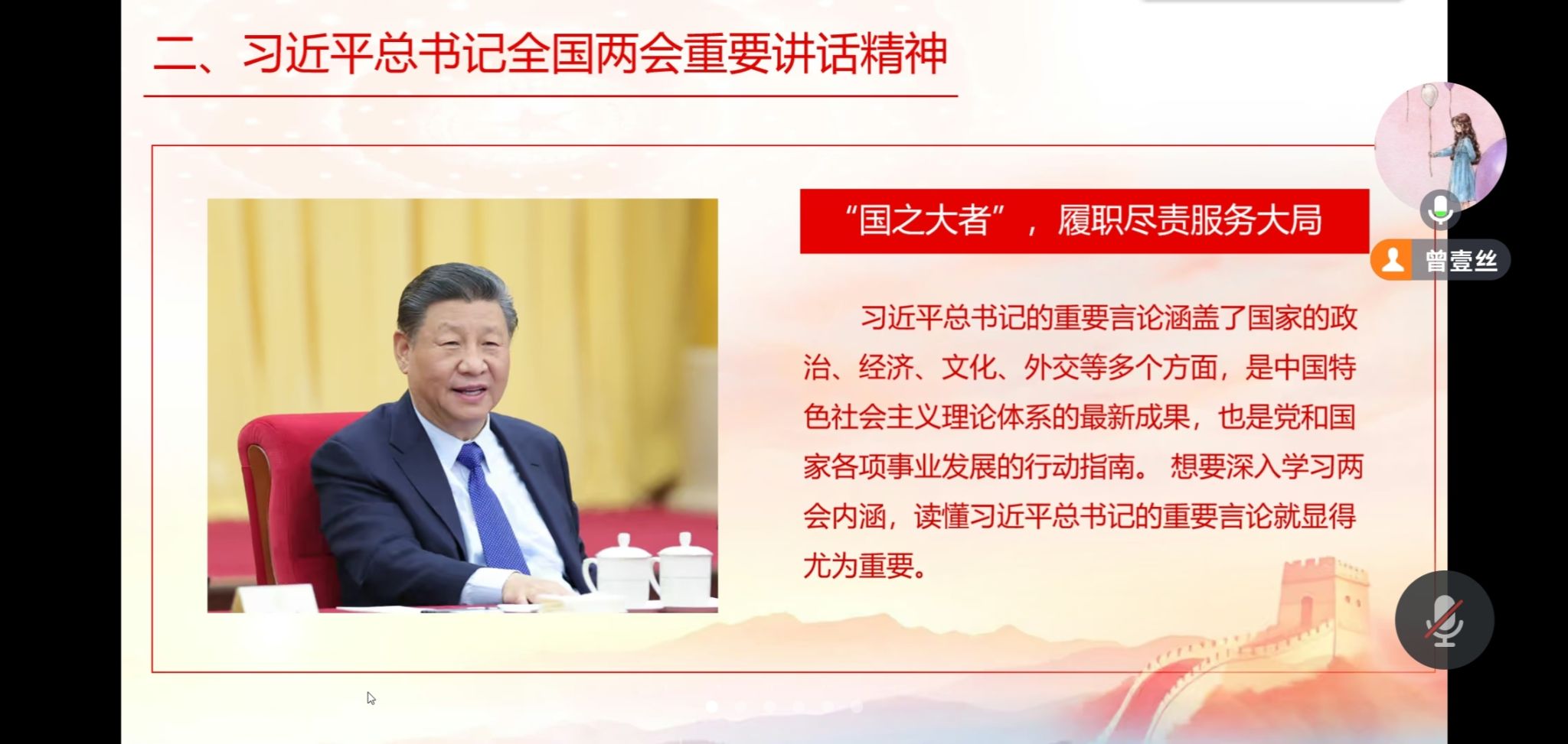 会议指出,这次全国两会,是在新的历史起点上登高望远、谋篇布局、凝心聚力的历史性盛会。习近平总书记在全国两会期间发表的系列重要讲话,深刻阐明了当前国内外形势、今年目标任务及重点工作等重大问题,为在强国建设、民族复兴新征程上推动高质量发展指明了前进方向、注入了强大动力。会议强调,政府工作报告通篇贯穿习近平新时代中国特色社会主义思想,全面贯彻中央经济工作会议精神,对经济社会发展作出了全面部署,为推动社会主义现代化建设提供了工作遵循,也为我们青年学生加强专业学习、提升本领提供了明确方向。会议指出,支部全体党员要深入学习领会、把握核心要义、抓好贯彻落实,切实把全国两会精神转化为推动支部建设、提升党建工作水平的生动实践。
