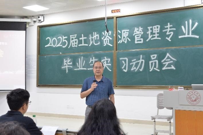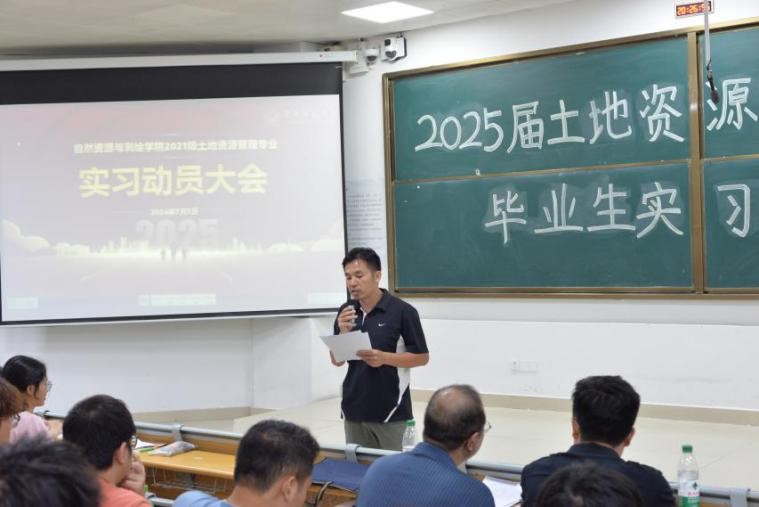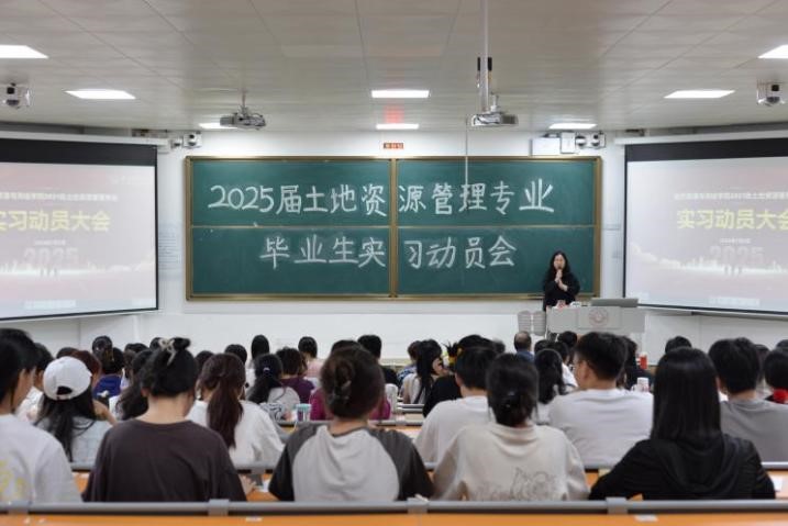 7月5日晚,betway必威西汉姆联土地资源管理系2025届毕业生实习动员大会在一号教学楼115阶梯教室隆重举行。土管系党支部陆一敢书记、系主任刘少坤老师、副主任张利国老师及欧梦琳老师出席会议,21土管1班、21土管2班级21土管专升本班141名同学参加,共同为即将踏上实习岗位的同学们精心筹备了一场别开生面的实习前动员大会,旨在为同学们搭建起通往职场的坚实桥梁。