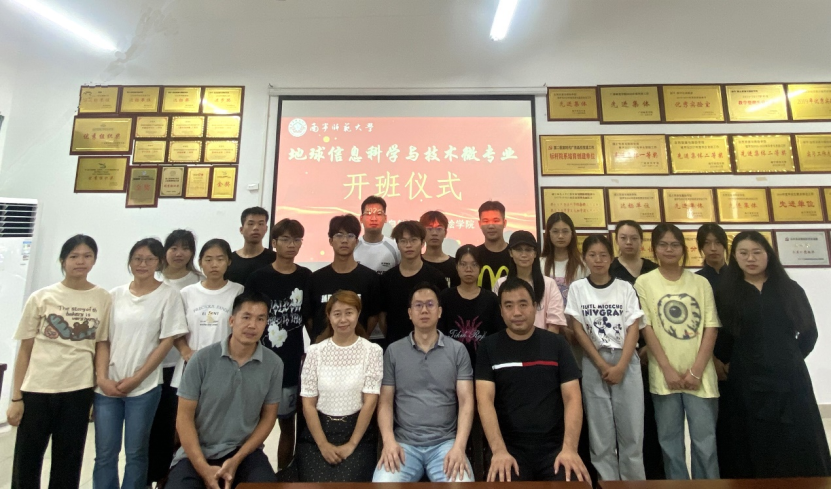 最后,参加开班仪式的领导、老师和同学们合影留念,标志着我校首个地球科学信息与技术微专业顺利开班。