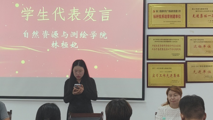 学生代表林桓妃同学分享了自己的心得和体会。她说,经过了一段时间的考虑,选择报读地球信息科学与技术微专业,认为它具有专业特色显著、实践性强等特点;通过今后的学习,我们将及时补充相关知识,一方面提高个人的综合素质,一方面为未来理想的就业添砖加瓦,更能满足我们的个性化和多样化发展。希望在老师的带领下,我们可以在学好理论知识的同时,也会在实践课中体会到学习的乐趣,提高自己的专业知识水平和综合能力,将来为社会做出更大的贡献。