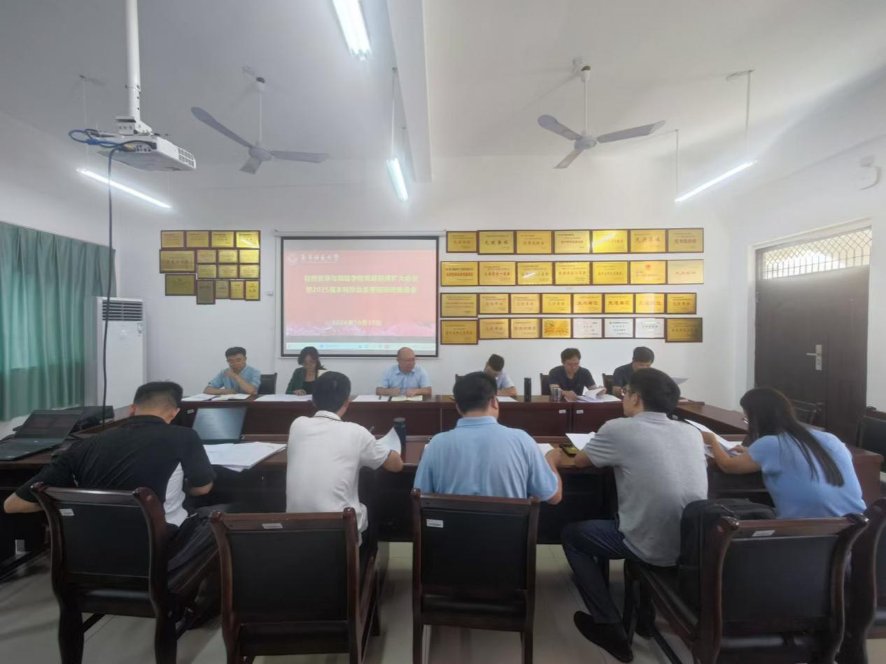 为进一步推进2025届本科毕业生考研深造工作,10月17日下午我院在地源楼A412会议室召开了党政联席扩大会议暨2025届本科毕业生考研深造推进会。学院党委书记黎先、院长陆汝成等学院各位领导出席会议,各专业系负责人、党支部书记及辅导员参加了会议。本次会议由黎先书记支持。