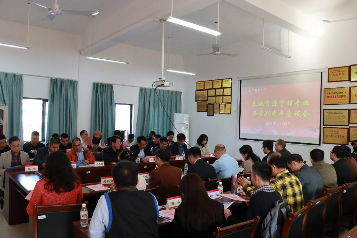 30年栉风沐雨,30年砥砺前行。近日,南宁师范大学betway必威西汉姆联土地资源管理专业办学30周年活动在武鸣校区隆重举行。自治区人大环境与资源保护委员会副主任委员左旭阳,自治区自然资源厅办公室主任苏正国,自然资源厅执法局副局长何杰模,广西国土测绘院副院长杨旺彬,贵港市自然资源局总工程师李庆,广西英华投资有限公司董事长莫烦,广西大源农业科技有限责任公司董事长陈锦培等20多名政府部门和企业校友代表,学院领导、各系负责人、教师代表参加会议。会议由学院院长陆汝成主持。