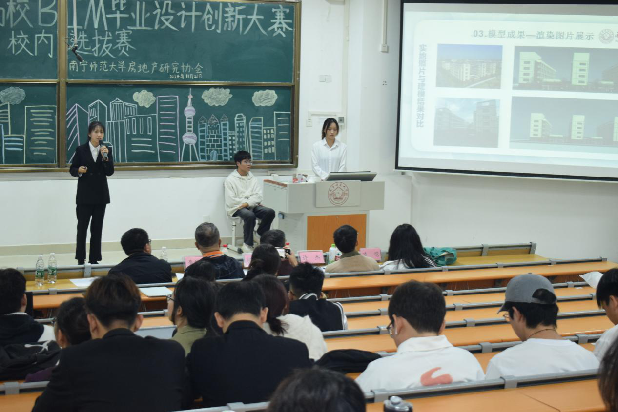 近日,第十一届国际高校BIM毕业设计创新大赛——南宁师范大学校园赛在学校武鸣校区顺利举办。房地产开发与管理、土地资源管理和测绘工程等专业60余名学生报名参赛,betway必威西汉姆联杨小雄副院长、娄信强老师、李继光老师、凌恺老师和许杰老师亲临比赛现场指导。