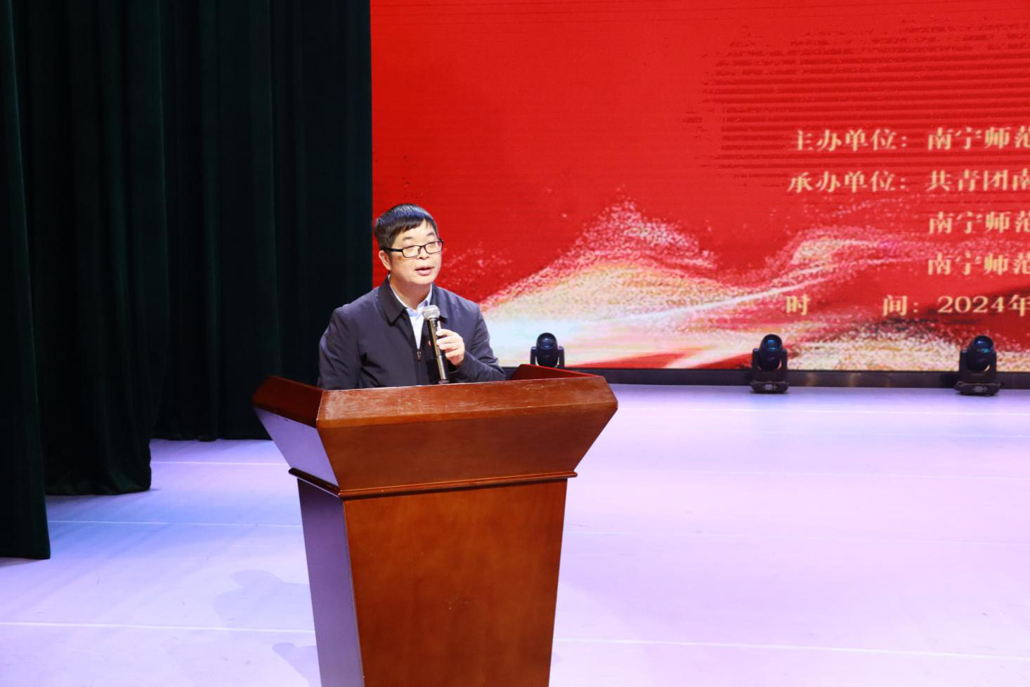 开幕式上,陆院长为本次大赛致辞。他指出新生才艺大赛既是学院主办的规格高、规模大、影响广的艺术盛会,也是资源学院学子展示艺术才华、激扬青春的舞台。他强调,一直以来,学院始终坚持“两个结合”,以美育人、以文化人,引导广大师生自觉弘扬革命文化,传承中华优秀传统文化,强化新时代中国特色社会主义文化教育,践行社会主义核心价值观,文化育人功能不断增强,广大学生审美和人文素养不断提高。他衷心期望,学院全体师生坚定文化自信,增强推动文化传承创新的意识和能力,注重文化凝练,树立精品意识,推进具有学院特色的专业文化、学科文化、课程文化、社团文化、寝室文化、团队文化、网络文化建设,不断提升学院文化建设水平。