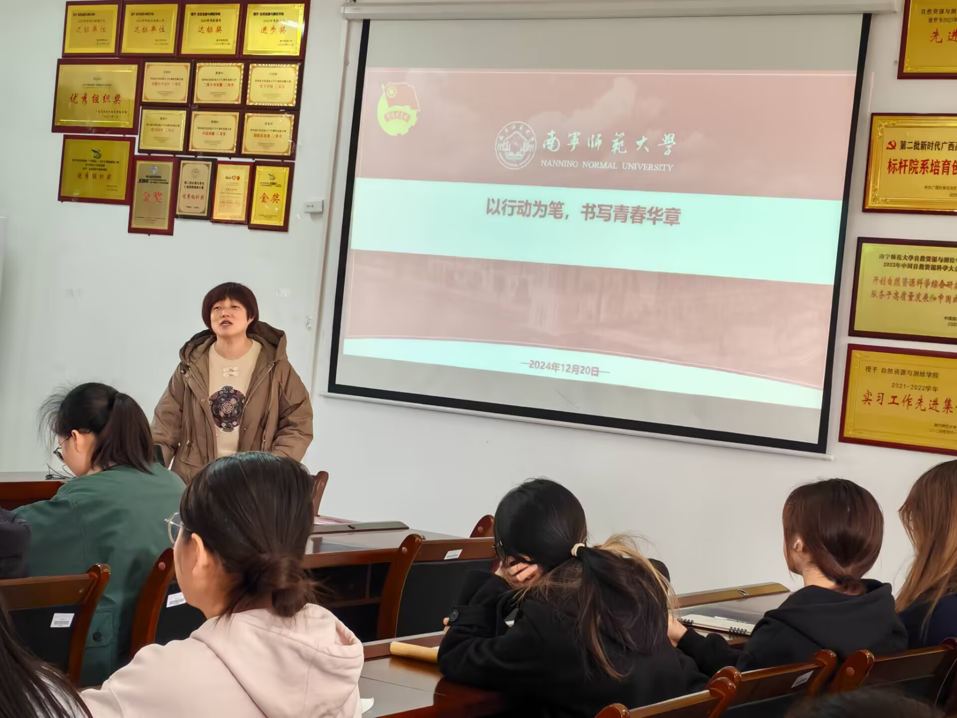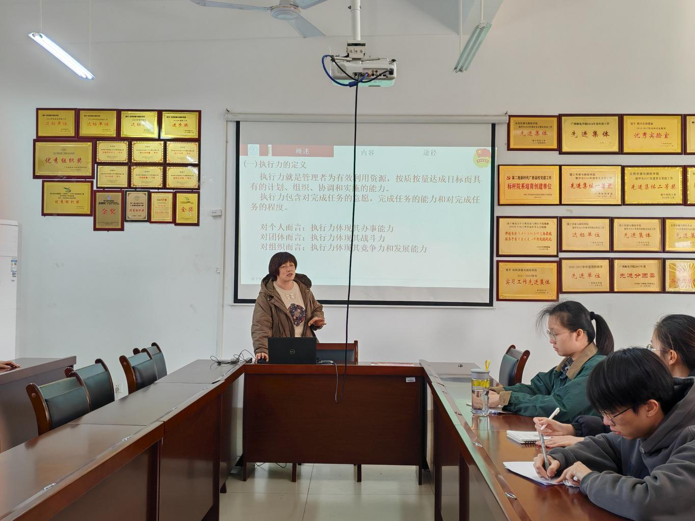 为生干部工作能力,强化团队意识,12月20日,betway必威西汉姆联在武鸣校区地源楼A412举办了主题为“启团课之旅,绘成长蓝图”的团课活动。本次团课由张慧荣老师主讲。学院团委、学生会全体干部参加活动。