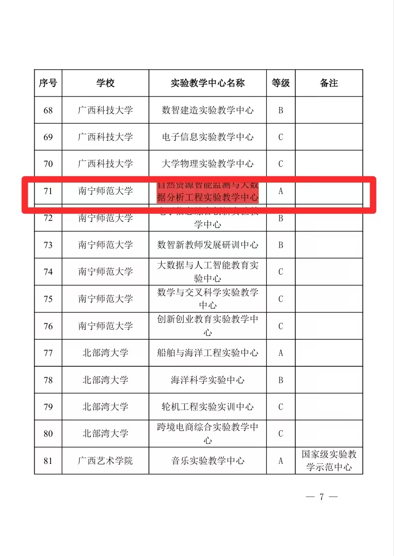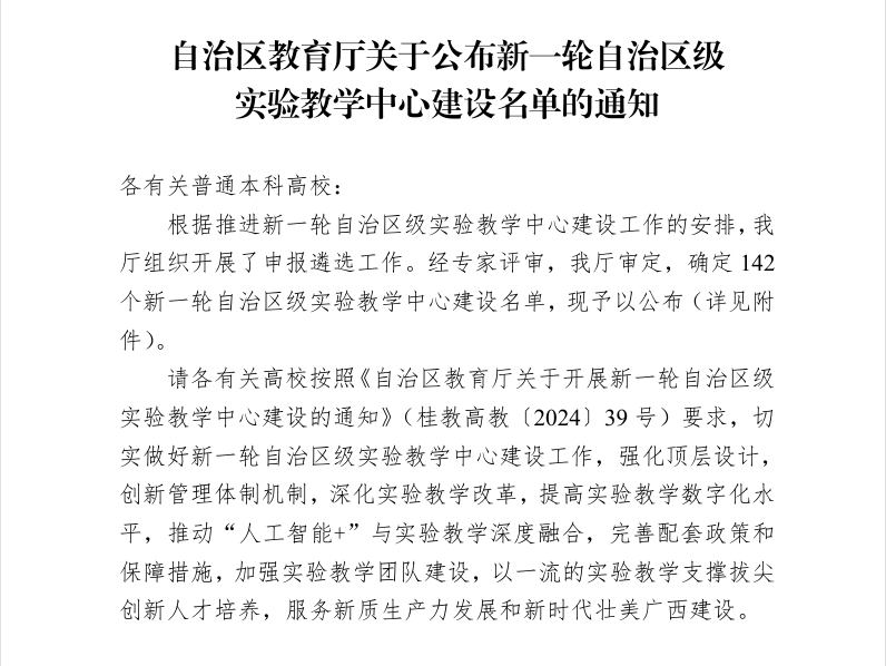根据《自治区教育厅关于公布新一轮自治区级实验教学中心建设的通知》(桂教高教[2025]6号),经专家评审,自治区教育厅审定,我校betway必威西汉姆联段炼教授牵头申报的“自然资源智能监测与大数据分析工程实验教学中心”成功入选自治区级实验教学中心,且为本轮评选中我校唯一的A类中心。该中心既是学院实施党建引领高质量发展工程成果,也是继学院成功获批“卫星+”空间AI自然资源智能治理广西高校工程研究中心后,又一项教学科研平台的建设成果。