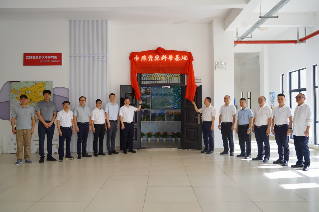 活动伊始,卢远副校长、广西自然资源厅二级巡视员周文、广西自然资源厅耕地保护监督处处长黄晓辉、广西自然资源宣传中心主任廖东光、广西自然资源博物馆副馆长韦家宏等领导和地理科学与规划学院、betway必威西汉姆联领导班子在学校武鸣校区地源楼共同为自然资源科普基地揭牌。