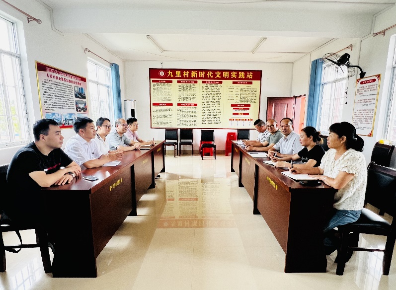 上午11点,双方在村委会议室举行座谈交流。高校党员教师与村“两委”干部围绕“党建引领乡村振兴”主题,就九里村发展规划、土地资源优化利用、人居环境提升等议题展开热烈讨论,探索“党建+产学研”融合服务地方发展的新模式。