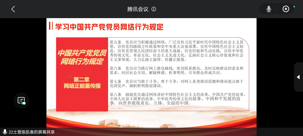 活动中,支部党员同志们集中学习了《关于规范党员干部网络行为的意见》和《中国共产党党员网络行为规定》,重点学习了党员干部在网络上必须严守的政治纪律和政治规矩,明确了严禁参与的网络传播行为与网络活动,掌握了以职务身份注册网络账号的报备要求以及举报监督的相关义务。同时,围绕党员网络行为管理、网络正能量传播等内容展开深入研讨学习,深刻领会党员在网络空间应发挥的先锋模范作用。