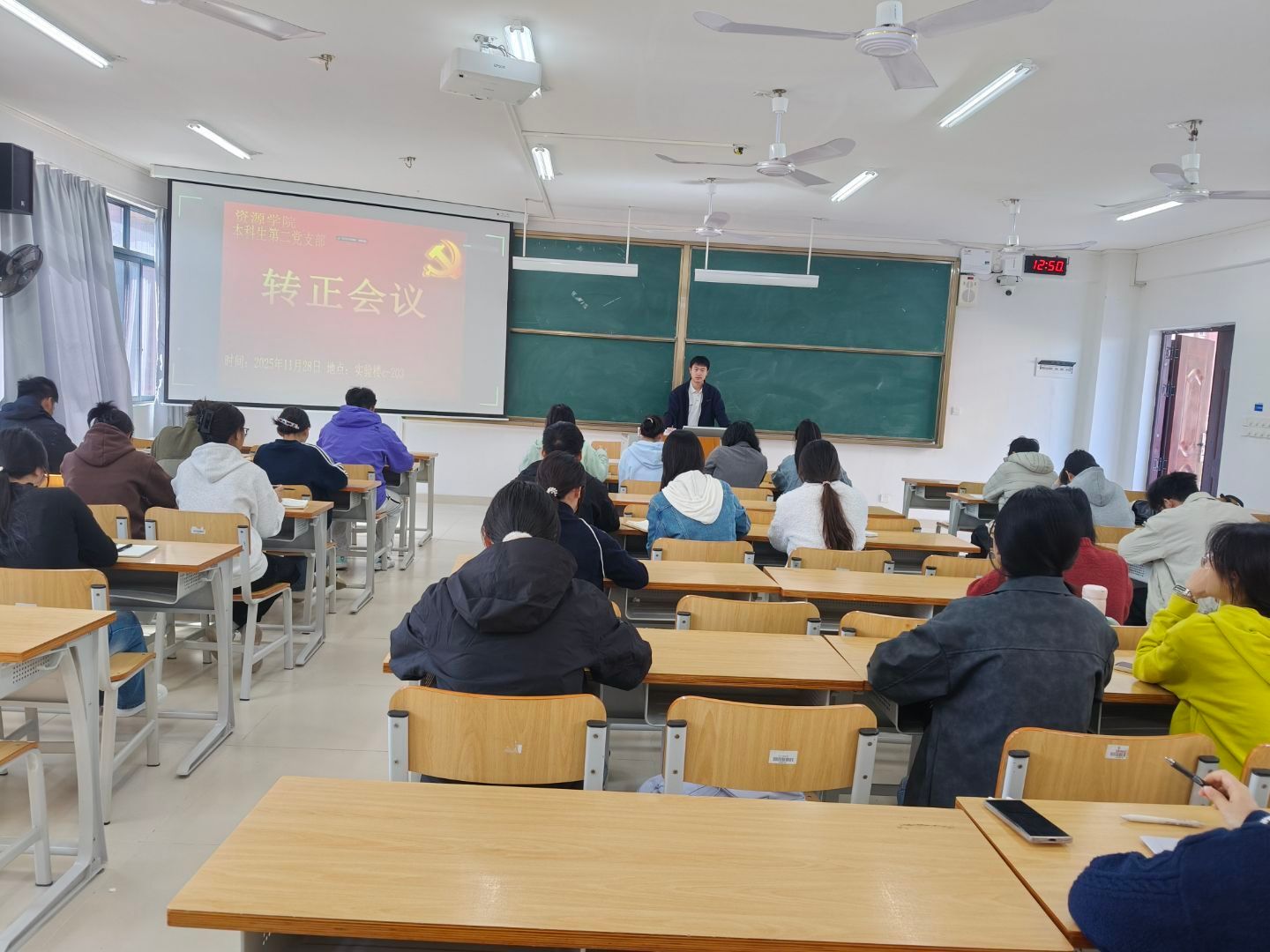 2025年12月5日,betway必威西汉姆联土地资源管理系本科生第二党支部在实验楼2C-203教室召开转正会议,讨论预备党员黎君昊同志的转正问题。会议由党支部书记黄琴同志主持,全体党员参加本次会议。