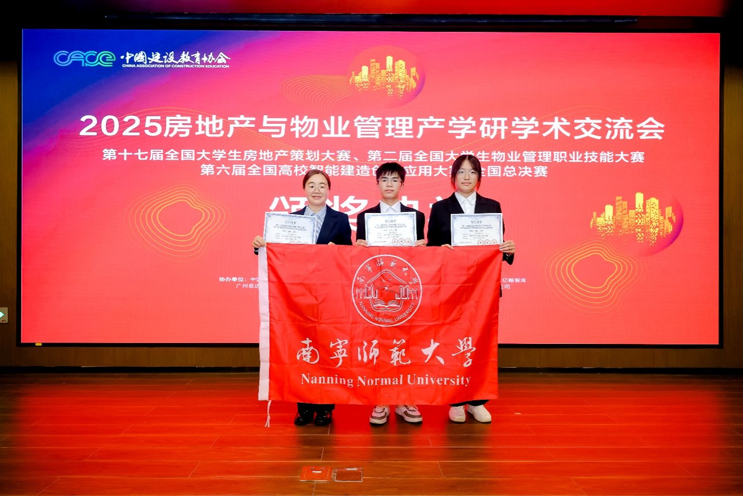 本次比赛由中国房地产业协会指导,中国建设教育协会主办,中国建设教育协会房地产专业委员会、重庆大学管理科学与房地产学院承办,共汇聚了 100余所院校、180支高校队伍同台竞技,围绕赛题完成市场需求分析、会所功能规划、运营模式设计及经济效益测算,完整呈现专业策划逻辑。在娄信强老师、黄乐老师和凌恺老师的指导下,庞杵文、陈秋令、黄清坤、农丽萍、黄思漫同学组成队伍,代表南宁师范大学参加此次大赛,比赛过程中,我校代表队精心准备,将专业理论知识与现实案例相结合,形成了一份兼具创新视野与落地潜力的房地产策划方案,运用可灵AI+工具制作房地产项目宣传视频。面对激烈的竞争,他们沉着冷静,展现了出色的协作能力与专业素养,其清晰的方案陈述与流畅的答辩环节获得了评审专家的认可与好评,成功斩获全国二等奖。