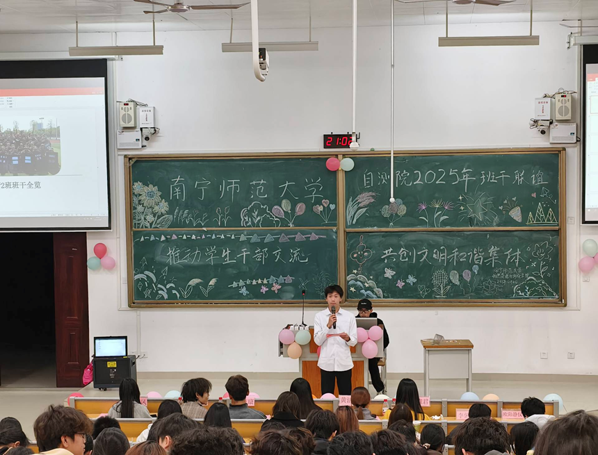 为加强学生干部队伍建设,促进23-25级班级之间及学生会与班级之间的沟通协作,提升班委履职能力,推动文明校园建设,betway必威西汉姆联学生委员会于2025年12月4日晚,在武鸣校区实验2-A105教室成功举办了以“推动学生干部交流,共创和谐文明集体”为主题的班干联谊活动。我院团委、学生会常委受邀出席,23至 25级各班学生干部及学生会代表共计百余人积极参与。