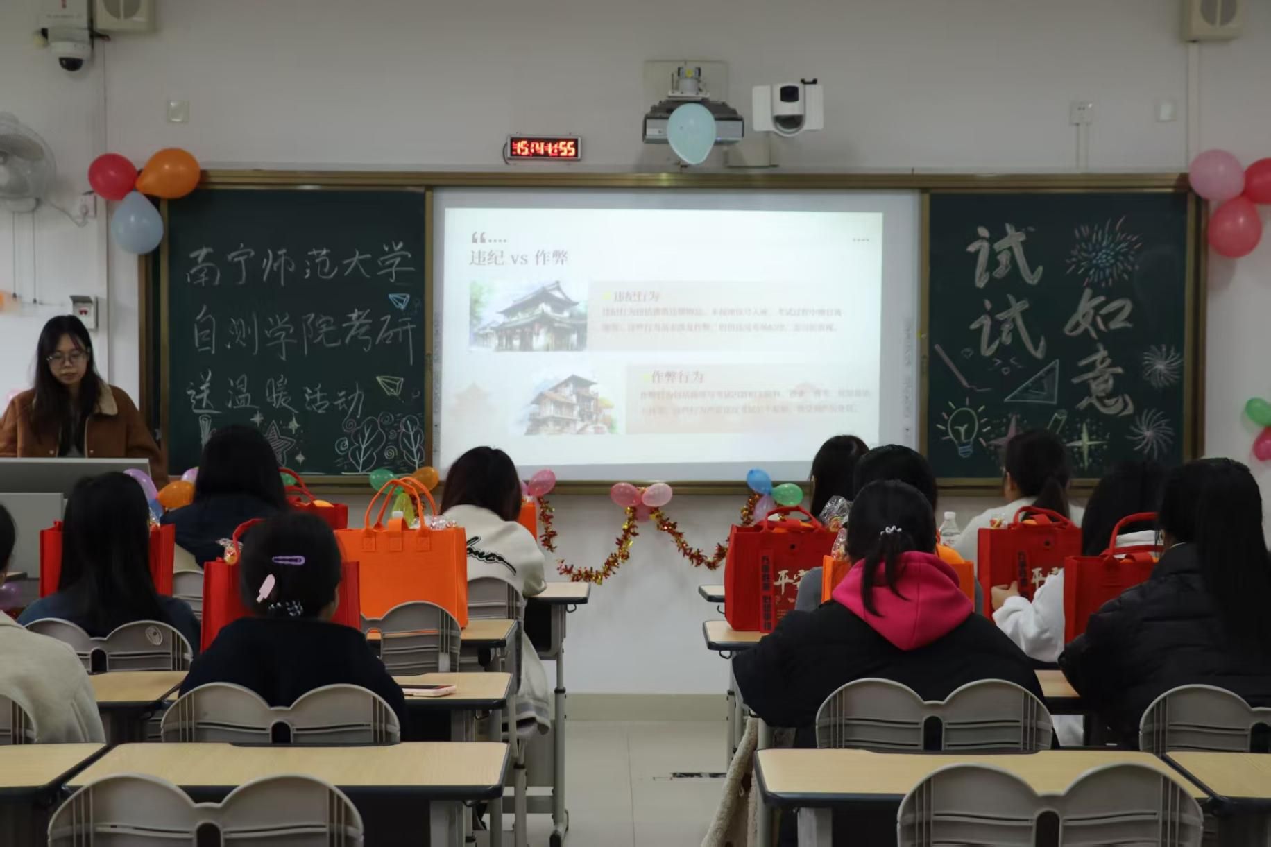 本次活动从物质关怀到精神引领,以生动形式为考研学子加油鼓劲,筑牢诚信考试思想根基,体现了学院的人文关怀。愿所有学子带着这份温暖与祝福,自信从容地步入考场,取得理想成绩。